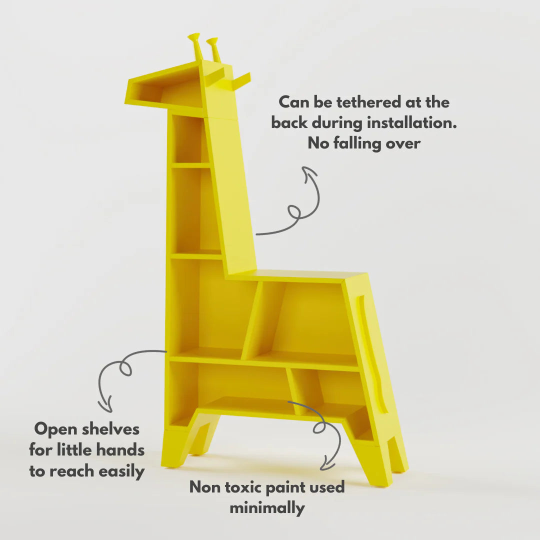 Lets stretch our imaginations and find place for books, toys and whatever else in this roomy giraffe’ many cubbies. This one’s bound to be around till the kids become as tall.