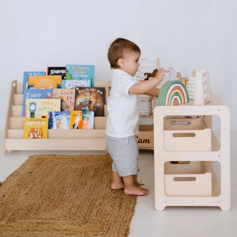 Montessori Bookshelf + Small Toy Shelf + Corner Toy Shelf, Wooden Shelf, Kids Bookcase, Toy Storage, Kids Furniture, Montessori Shelf